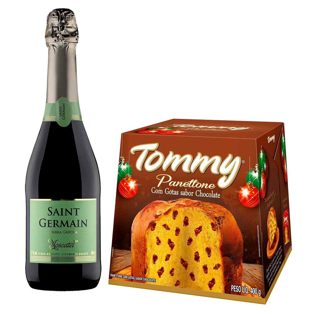 Espumante branco saint germain moscatel 660ml+panetone com gotas de chocolate tommy 400G