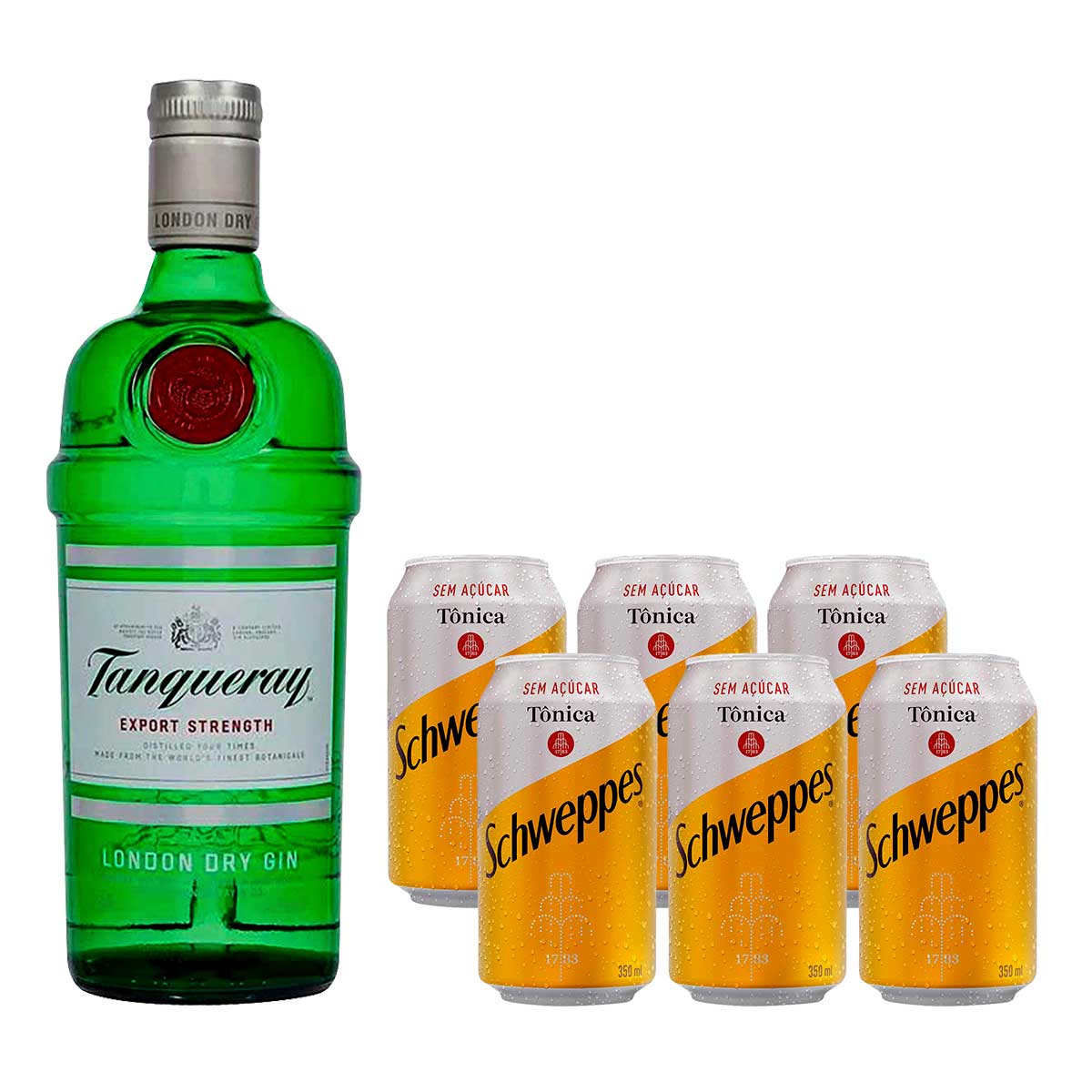 Gin Tanqueray 750 ml + 6 Tônicas Schweppes sem Açúcar Lata 350 ml
