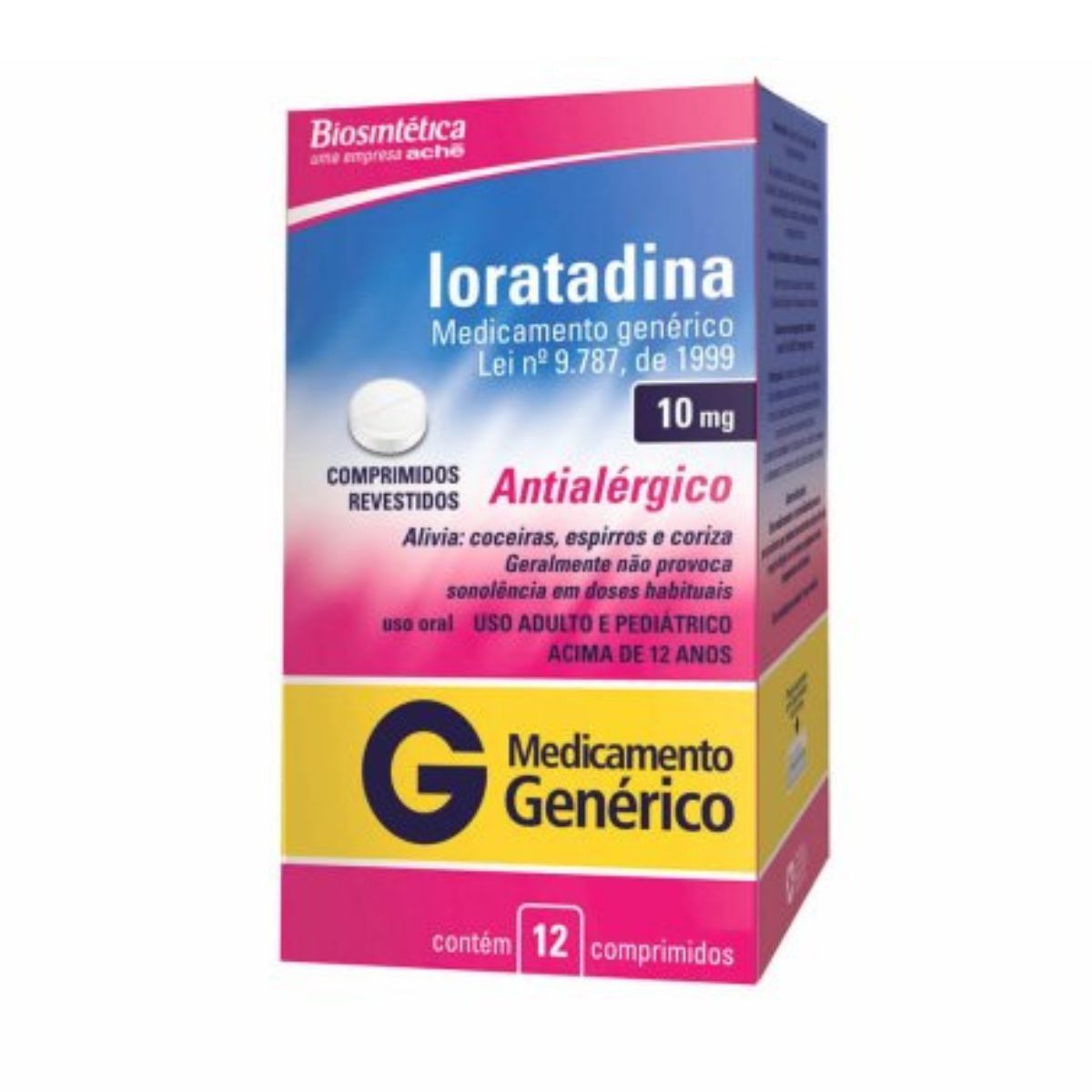 Antialérgico Loratadina 10mg Aché Biosintética com 12 Comprimidos