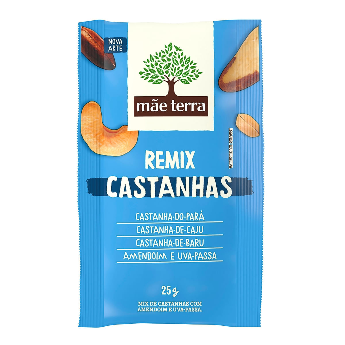 • O Remix Castanhas Mãe Terra é um snack de bolso com um mix saudável de diferentes castanhas, amendoim e uva-passa; prático e nutritivo, para matar a sua fome a qualquer hora e lugar • Snack com 4 castanhas do nosso Brasil: da Amazônia, a castanha-do-pará; do Cerrado, o baru; da Caatinga, a castanha-de-caju; e do Pantanal, o amendoim. Além do sabor docinho natural das uvas-passas • Um snack saudável 100% natural com um mix de castanhas, naturalmente ricas em gorduras boas, fibras, minerais, vitaminas e antioxidantes • Mix de castanhas ideal para um lanche rápido, com ingredientes da biodiversidade brasileira, 100% natural, nutritivo e muito prático • Nosso Remix Castanhas Mãe Terra não possui ingredientes de origem animal, sendo um snack vegano e 100% natural, livre de transgênicos e pozinhos artificiais • Nós, mãe-terráqueos, acreditamos que a mudança começa pelo nosso prato. Por isso, temos paixão em produzir alimentos naturais, saudáveis e orgânicos que mudam o corpo, a alma e a nossa mãe Terra. O Remix Castanhas Mãe Terra é um snack saudável de bolso perfeito para você levar para qualquer lugar. Esse snack da Mãe Terra é feito com 4 castanhas do nosso Brasil: da Amazônia, a castanha-do-pará; do Cerrado, o baru; da Caatinga, a castanha-de-caju; e do Pantanal, o amendoim, em uma combinação com o sabor docinho natural das uvas-passas. E o melhor: não tem adição de sal, é purinho, purinho! O Remix Castanhas Mãe Terra reúne tudo de melhor num lanchinho só: valoriza os ingredientes da biodiversidade brasileira, é puro e 100% natural, nutritivo e muito prático. Tem como ser mais perfeito? As castanhas são naturalmente ricas em gorduras boas, fibras, minerais, vitaminas e antioxidantes. Para quem busca um lanche rápido, snacks e produtos veganos, esse mix de castanhas não possui nenhum ingrediente de origem animal, sendo um produto vegano e 100% natural, livre de transgênicos e pozinhos artificiais. Fundada em 1979, a Mãe Terra é líder no segmento de alimentos naturais e orgânicos no Brasil. E é com muita alegria que podemos dizer que somos uma Empresa B, comunidade global de organizações que buscam o desenvolvimento socioambiental, além de econômico. Temos o desafio de crescer, mas sempre respeitando os limites da natureza, valorizando a preservação ambiental e com cuidado social. Ser parte desse movimento nos mostra que estamos no caminho certo. Afinal, tem que valer a pena levantar cedo. Nós, mãe-terráqueos, acreditamos que a mudança começa pelo nosso prato. Por isso, temos paixão em produzir alimentos naturais e orgânicos que mudam o corpo, a alma e a nossa mãe Terra. Os 7 princípios da Mãe Terra são: 1. Alimentos gostosos, feitos com afeto; 2. Integral de verdade, naturalmente nutritiva; 3. Orgânicos, cada vez mais; 4. Livres de transgênicos e pozinhos artificiais; 5. Privilegiando os pequenos produtores; 6. Valorizando os ingredientes nativos do nosso Brasil; 7. Vegana, aqui só tem ingredientes vegetais. Sabemos que não somos perfeitos, mas nos esforçamos para fazer nossa parte. Vamos juntes? #AlimenteaMudança